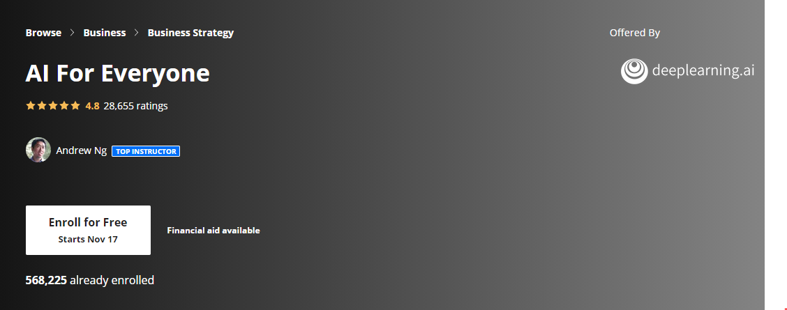 Here is the link if you want to join the course: https://www.coursera.org/learn/ai-for-everyone