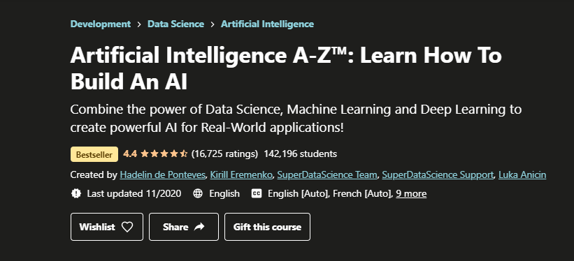 - Artificial Intelligence A-Z™: Learn How To Build An AI (Udemy)